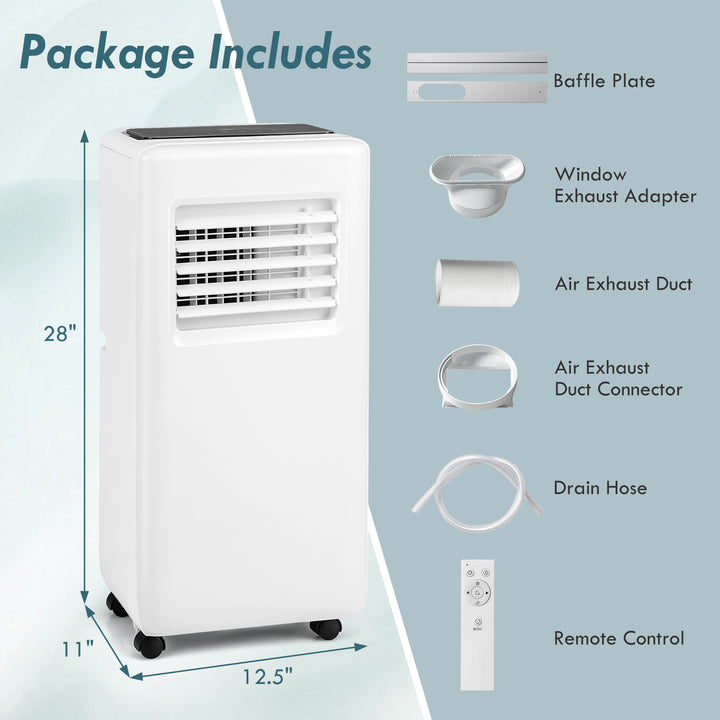 8000 BTU Portable Air Conditioner with Remote Control and LED Digital Display
