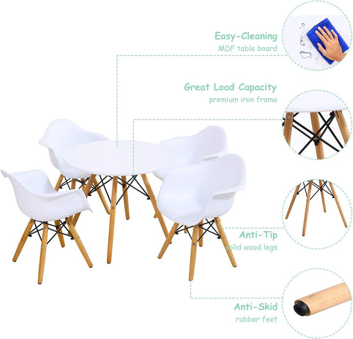 5 Pieces Kids Mid-Century Colorful Table Chair Set