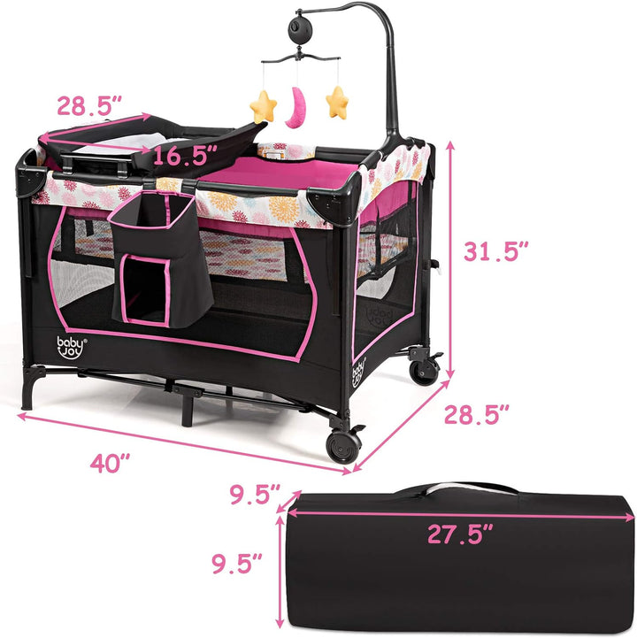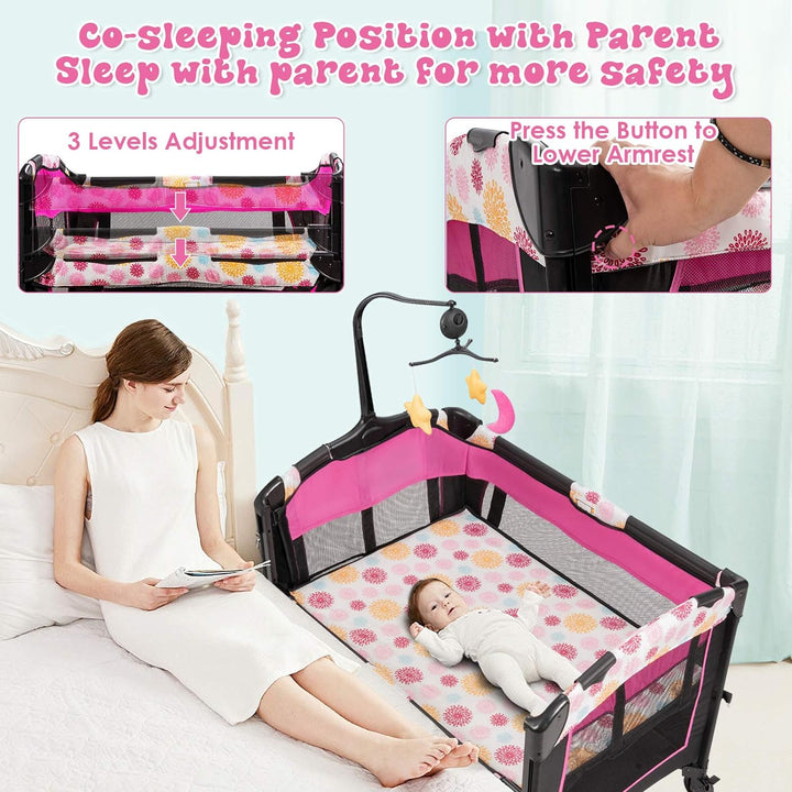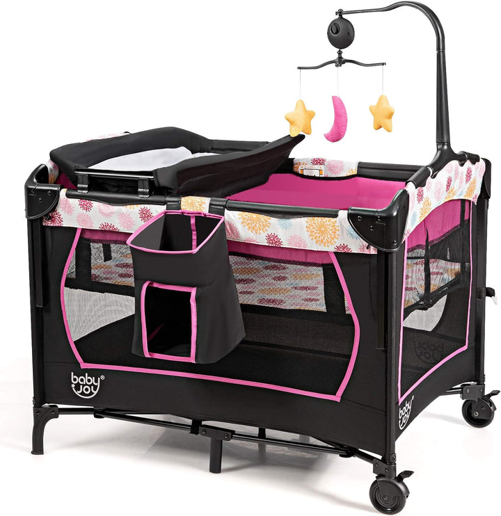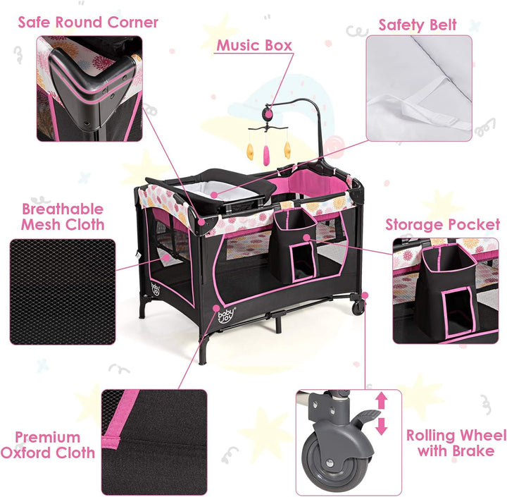 Multi-Functional Design: The playard serves as a bassinet bed, a diaper changing table, and an activity center, adapting to the needs of growing babies.