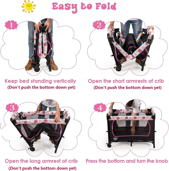Convenient Folding and Detachable Design: Both the bassinet and diaper table are removable, and the playard can be folded in four simple steps. An Oxford storage bag makes it easy to transport.