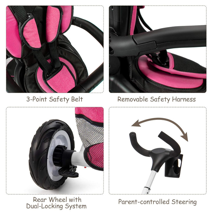 Invest in this 7-in-1 kids tricycle to provide your child with a safe, comfortable, and versatile mode of transport that adapts to their growth and developmental needs.