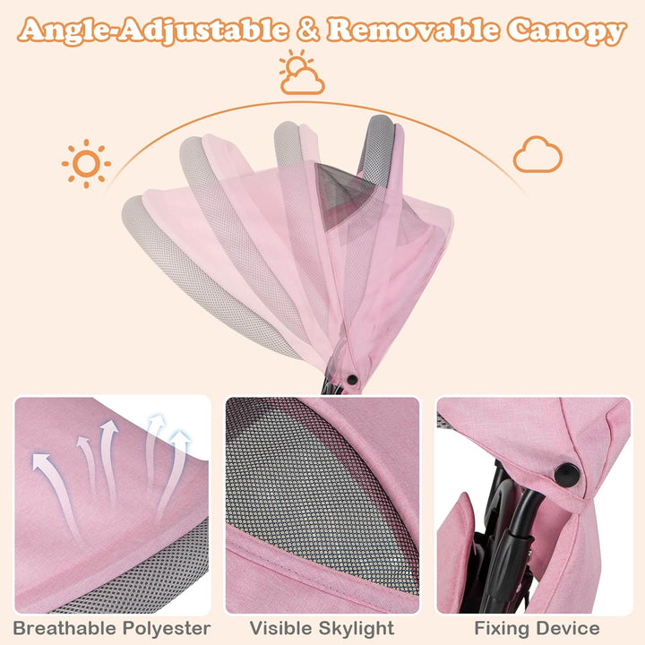 Reversible Seat and Adjustable Design: The seat can be reversed to face either inside for better parental care or outside for viewing enjoyment. The adjustable canopy has two positions to accommodate different weather conditions, and its visible skylight allows parents to observe their child easily.
