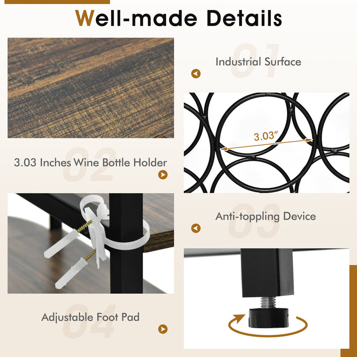 47 Inches Wine Rack Table with Glass Holder and Storage Shelves-Rustic Brown