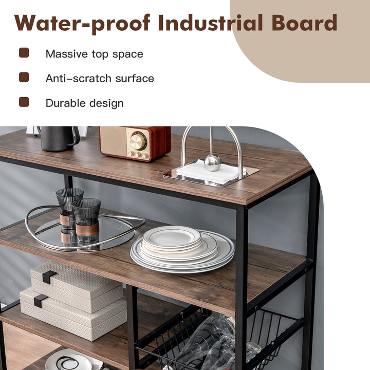 Our Kitchen Baker's Rack is the epitome of versatility and style. Offering a spacious countertop, 3-tier open shelves, and 2 pull-out wire baskets, this piece is designed to accommodate a wide range of items¡ªfrom kitchen utensils and food to books and decorations. Whether you're looking for a baker¡¯s rack, a storage shelf, a display rack, or even a bookshelf, this organizer meets all your needs while adding a charming industrial flair to your space.