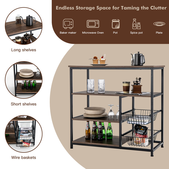 4-Tier Industrial Kitchen Baker's Rack with 2 Wire Baskets