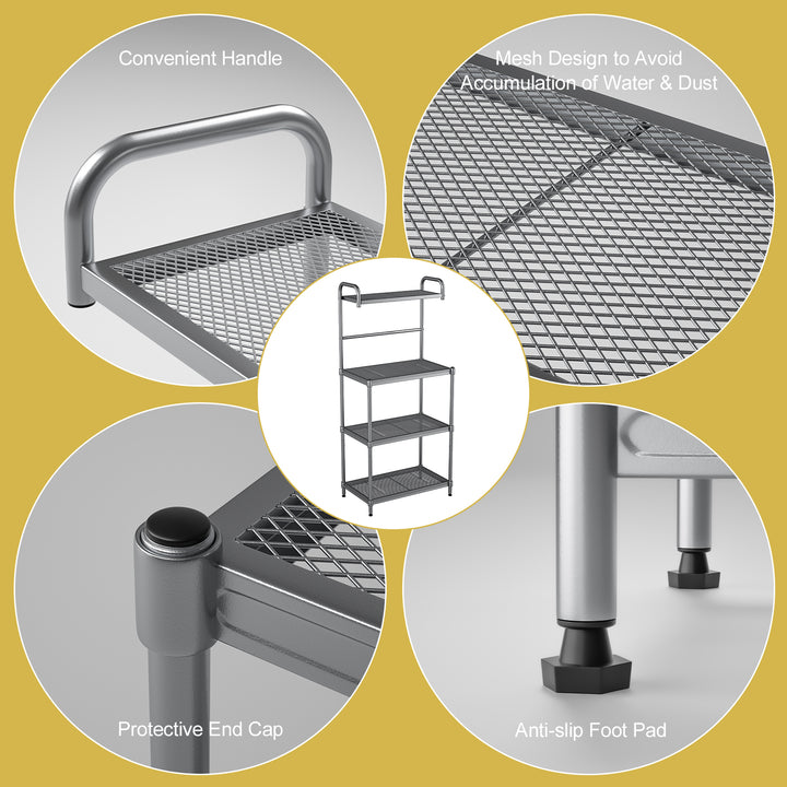 4-Tier Kitchen Microwave Storage Rack with Metal Shelves
