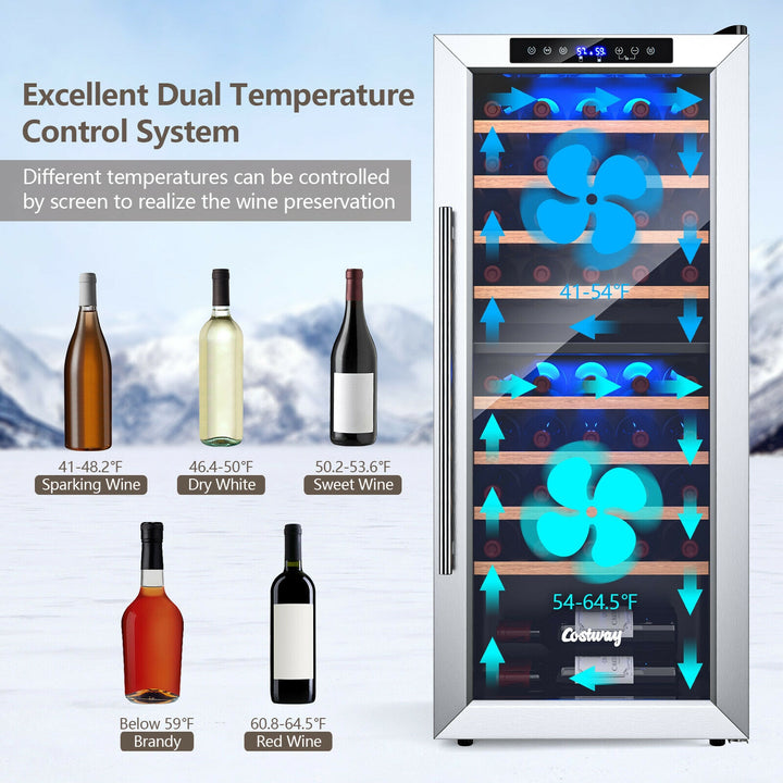 43 Bottle Wine Cooler Refrigerator Dual Zone Temperature Control with 8 Shelves