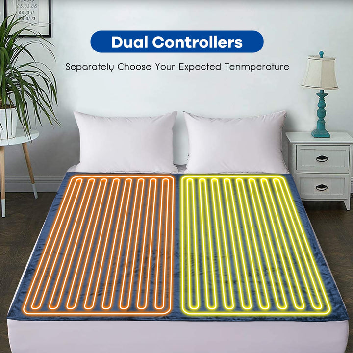 84 x 90 Inch Flannel Heated Electric Blanket with Dual Controllers