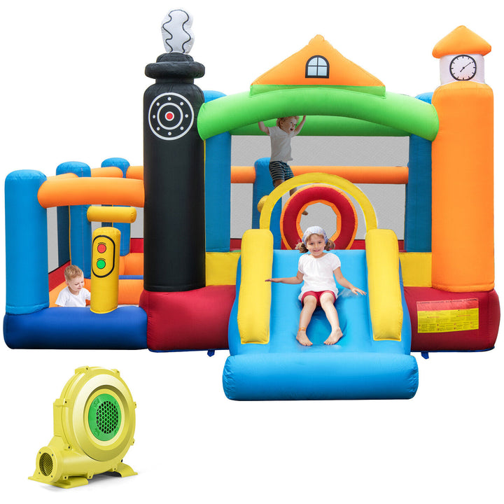 Train Themed Kids Bouncer with Slide and Basketball Hoop with 950W Air Blower