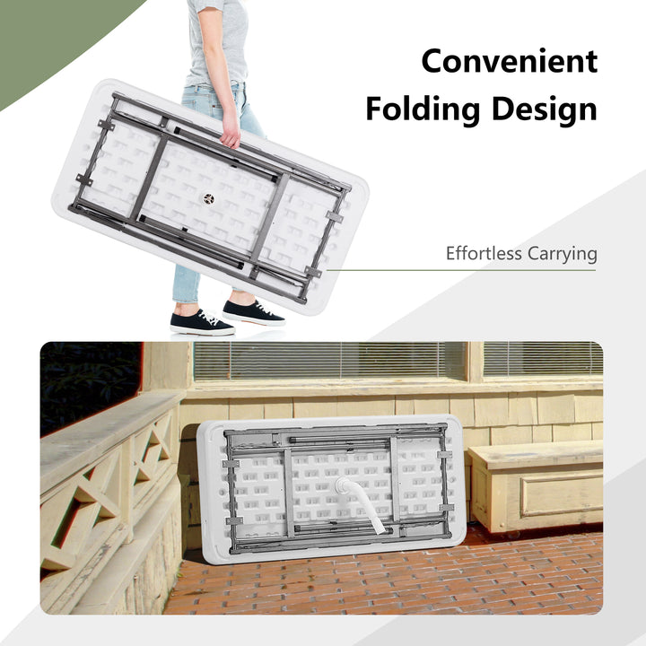 Durable Construction: The table top is made from high-quality polyethylene, ensuring longevity and durability through years of use. The iron legs are solid, with an exquisite finish that's rust-resistant, contributing to the table's overall stability and sturdiness.