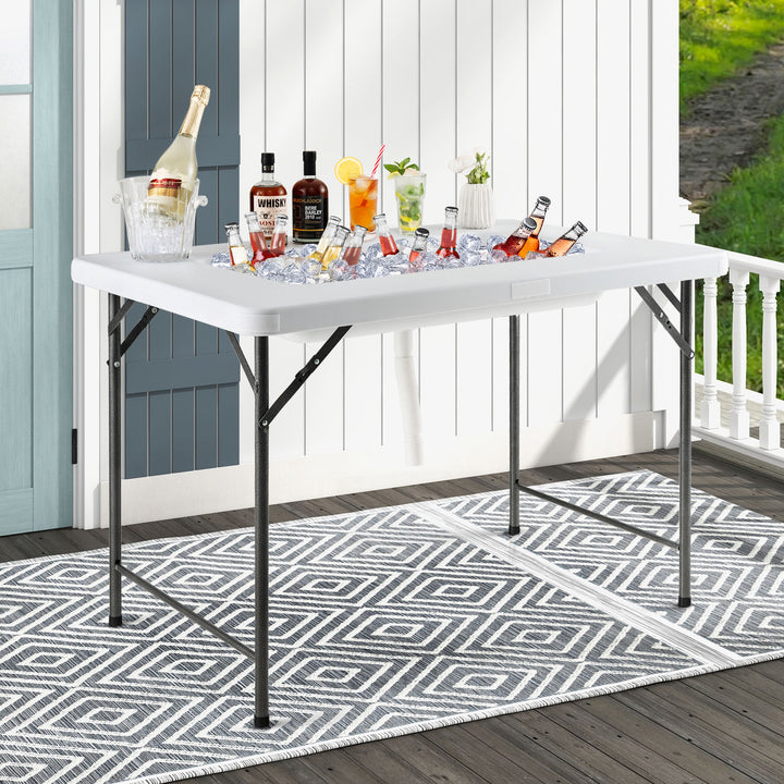 4 Feet Folding Ice Bin Table with Skirt for Camping Picnic Wedding