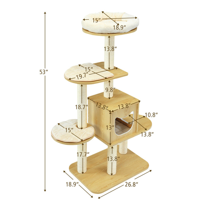 4 Levels Modern Wood Cat Tower with Washable Mats