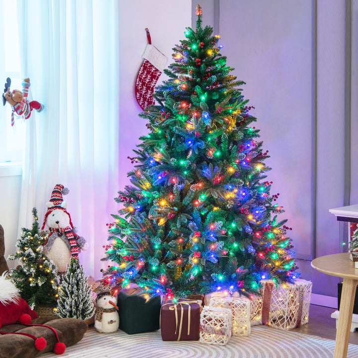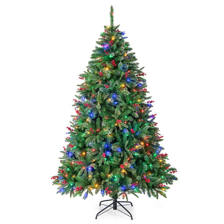 Elevate your holiday decor with our luxurious and visually stunning 6/7 ft artificial Christmas tree. With dense branch tips, multi-color LED lights, and adorned with red berries and sparkling silver powder, this tree creates a magical ambiance and vibrant charm for your Christmas celebrations. Crafted from premium materials and designed for easy installation, this tree is the perfect addition to any festive setting.