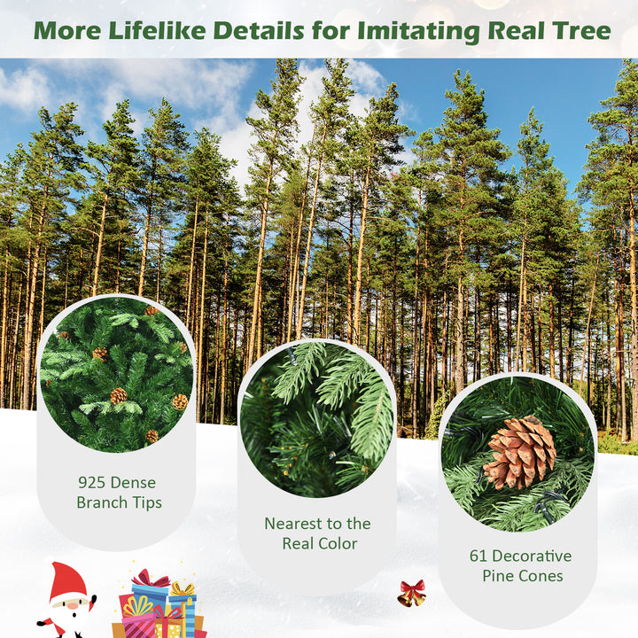 7 Feet Artificial Christmas Tree with LED Lights and Pine Cones