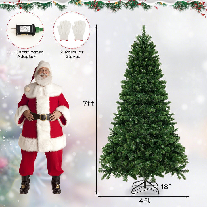 7 Feet Hinged Christmas Tree with PVC Branch Tips Warm White LED Lights