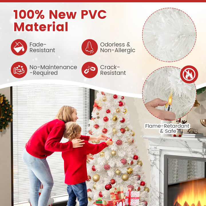 Stunning and Vivid Appearance: The 6/7 ft artificial Christmas tree boasts 220/270 lush branch tips, providing a full and luxurious look. The vivid full-white appearance and realistic flocked snow create a romantic winter scene in your home.