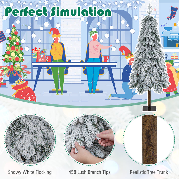 6 Feet Flocked Hinged Christmas Tree with 458 Branch Tips and Warm White LED Lights