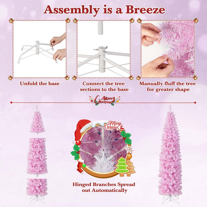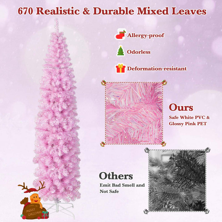 Exquisite Holiday Decor: The vivid and realistic treetop, along with 343, 475, or 670 glossy pink and interspersed white leaves, creates a captivating and luxurious appearance. The pencil tree design fits perfectly into any corner, enhancing your holiday decor.