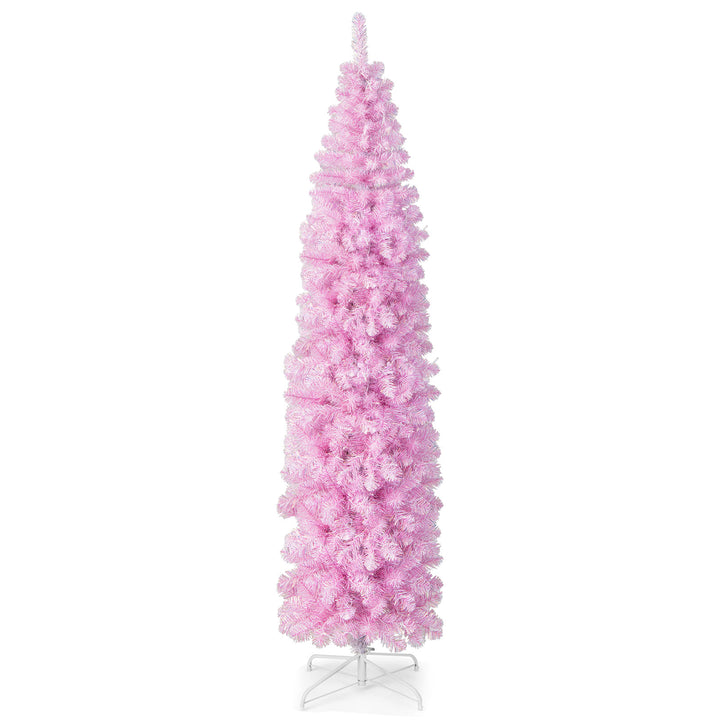 Add a touch of luxury and enchantment to your holiday decor with our exquisite pencil-shaped artificial Christmas tree. Featuring a unique combination of glossy pink and interspersed white leaves, this tree...