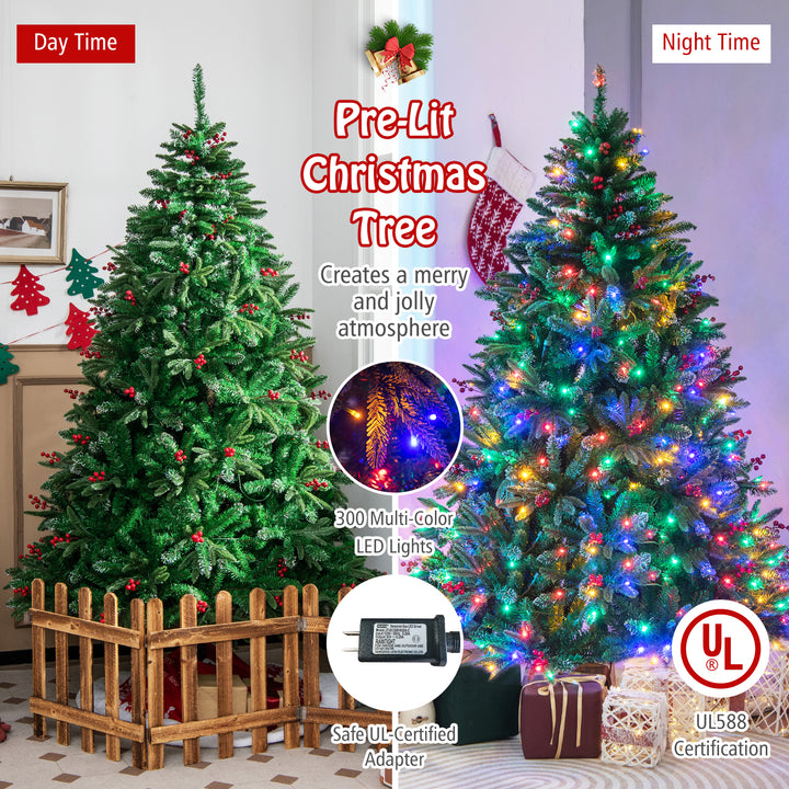 Add a touch of luxury and festive charm to your holiday celebrations with our 6/7 ft artificial Christmas tree. Featuring dense branch tips, multi-color LED lights, and adorned with red berries...