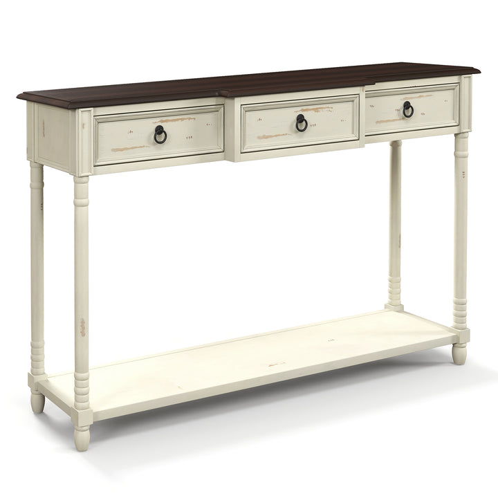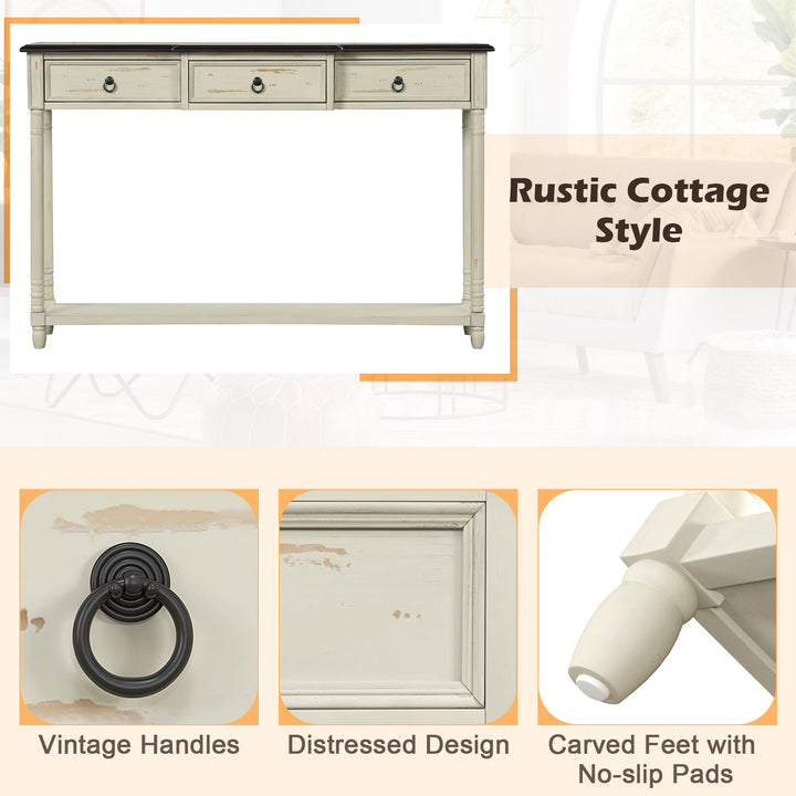 52 Inch Farmhouse Console Table with 3 Drawers and Open Storage Shelf for Hallway