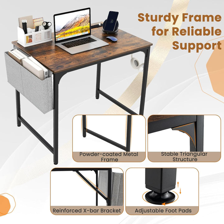 32 Inch Computer Desk Small Home Office Desk with Charging Station