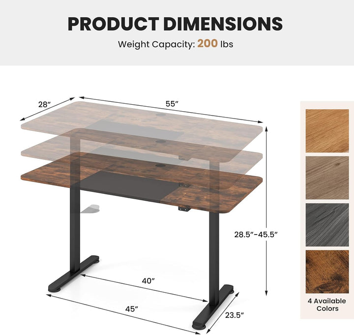 Sit-To-Stand Design: Effortlessly switch between sitting and standing positions to reduce fatigue and combat obesity. Adjust the desktop height from 28.5" to 45.5" at the touch of a button for an ergonomic work environment.