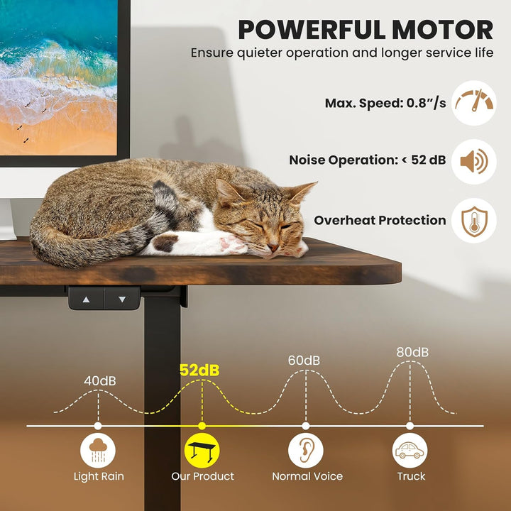Efficient Motor System: Powered by a low-noise lifting motor, the desk adjusts to your preferred height at a rate of 0.8 inches per second. With a load capacity of 200 lbs, it offers a reliable and sturdy workspace for various tasks.