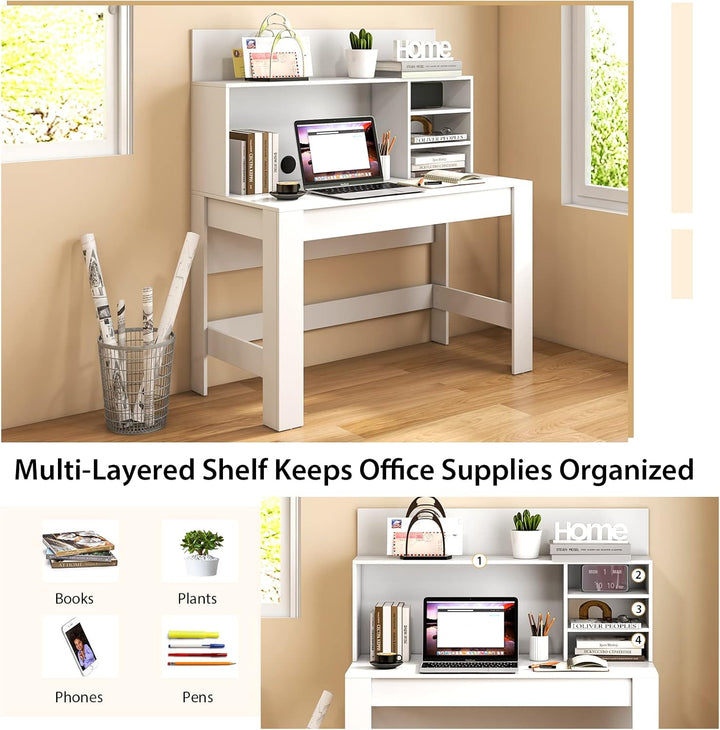 Large Open Bookshelf: This home office desk includes a roomy bookshelf measuring 48" x 9.5" x 16.5" (L x W x H). The shelf offers abundant storage space for working essentials, books, or decorative items, allowing you to keep your workspace clutter-free and refreshing.
