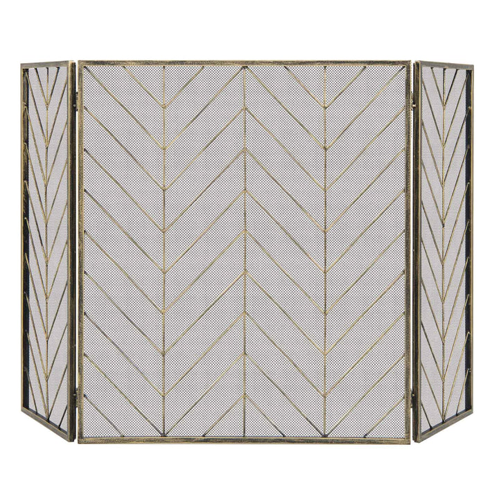 3-Panel Metal Foldable Fireplace Screen with Metal Mesh