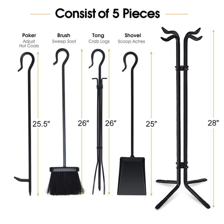 5 Pieces Fireplace Iron Standing Tools Set