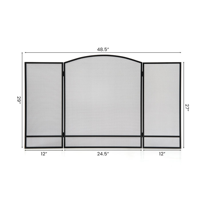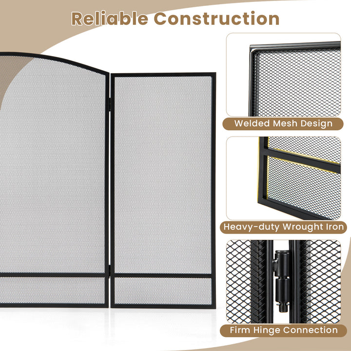 3-Panel Foldable Fireplace Screen with Wrought Metal Mesh