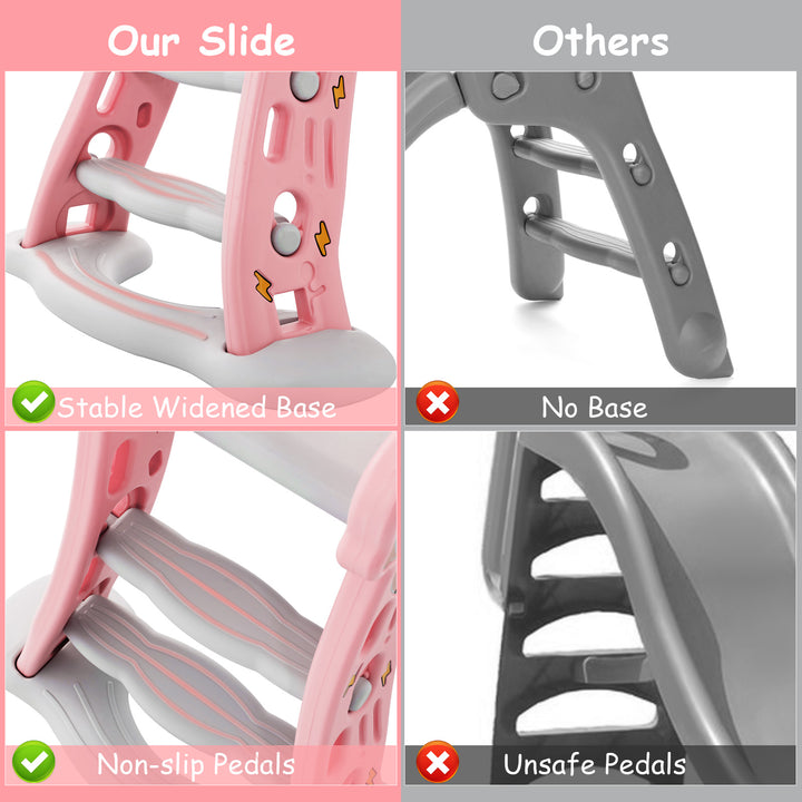 Safety First: Rest assured, our slide prioritizes safety with a secure slideway featuring a thoughtful buffer for smooth, safe landings. The widened base and non-slip pedals ensure stability and prevent wobbling, providing a secure climbing experience for your child.