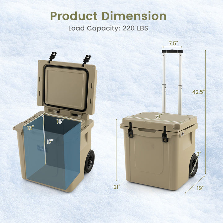 Portable and Versatile: This cooler is as mobile as it is versatile. An adjustable handle extends from 20.5" to 42.5" or 32.5" for easy towing, complemented by two portable handles and smooth wheels for effortless transport across various terrains.