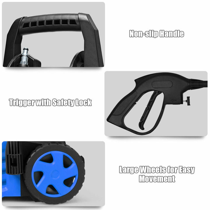 Powerful Cleaning Capability: With a pressure force of 2030 PSI and a flow rate of 1.6 GPM, this high-pressure washer is capable of tackling tough dirt and grime on a wide array of surfaces. Whether it's refreshing your garden area, cleaning your vehicles, or restoring the look of your patio, driveway, or deck, this machine delivers exceptional results.