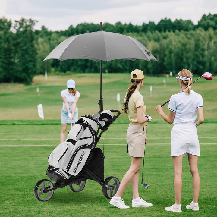 Sufficient Storage Space: The cart includes an adjustable umbrella stand to protect you from the sun and rain. The large-capacity storage bag features two layers: an inner bag for golf equipment and an outer bag with a reflective tin foil coating to keep drinks cold or hot, as needed.
