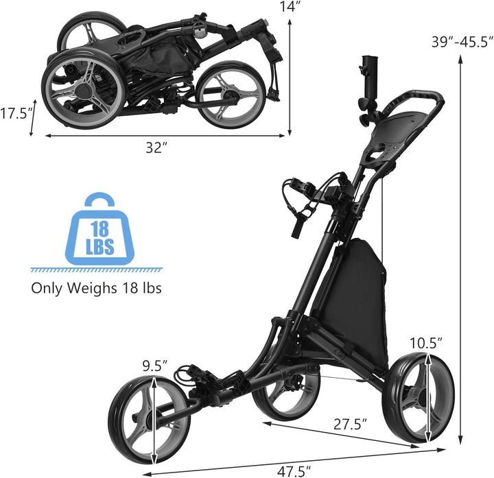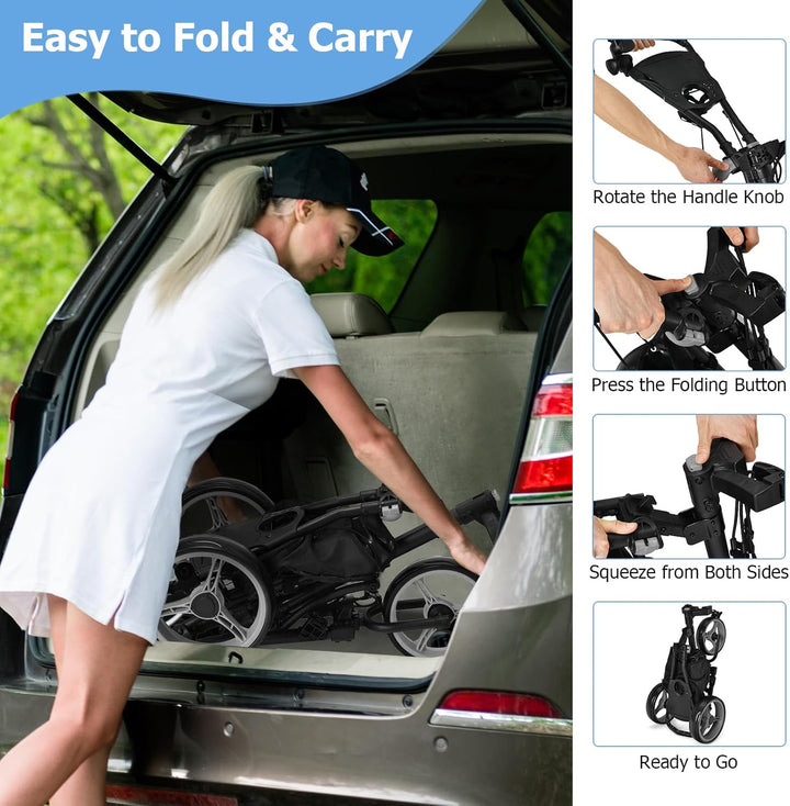 3 Wheels Folding Golf Push Cart with Storage Bag and Scoreboard