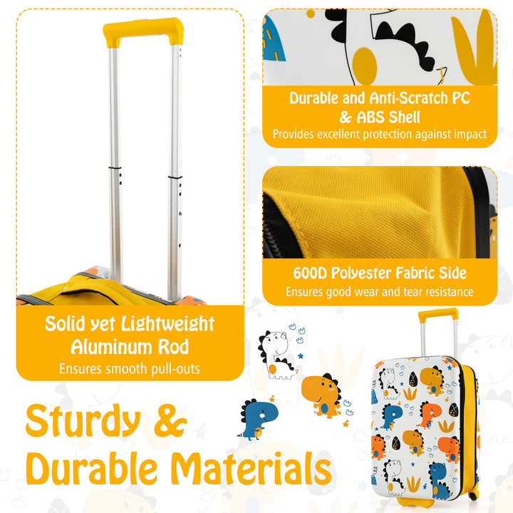 Cute Appearance and Wide Application: Featuring adorable strawberry or dinosaur patterns, this carry-on suitcase adds a touch of playfulness to your child's travel experience. Suitable for various outdoor activities such as train rides, airplane trips, picnics, school, sleepovers, and more, this luggage is certified by ASTM and CPSIA for safety and quality.