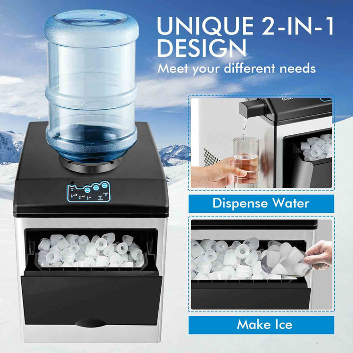 2-in-1 Stainless Steel Countertop Ice Maker with Water Dispenser