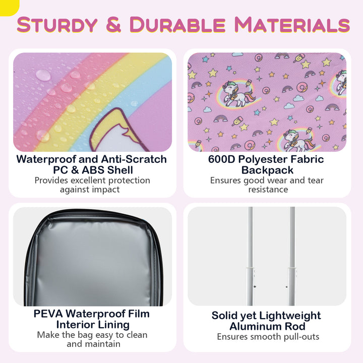 Stylish Suitcase with Safety Certifications: Featuring cute patterns on the surface, this luggage set is a fashionable gift for young travelers. The compact, airline-approved carry-on suitcase ensures easy travel, and the set is certified by ASTM and CPSIA, making it a safe and reliable choice for your little one.