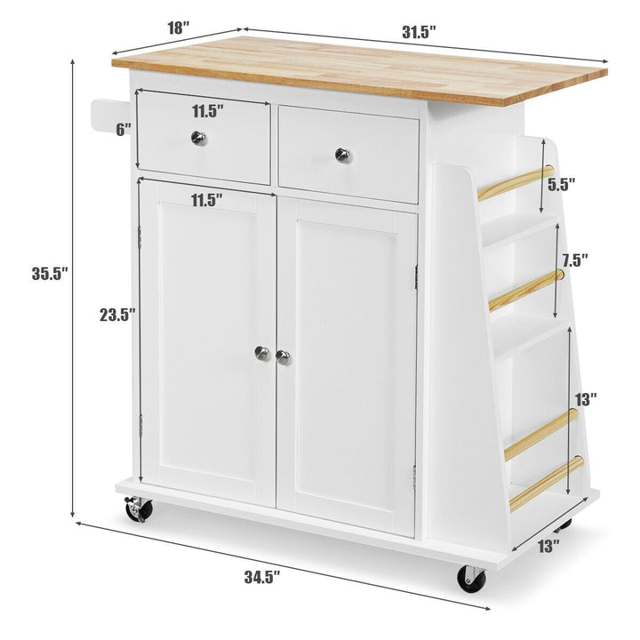 Rubber Wood Countertop Rolling Kitchen Island Cart