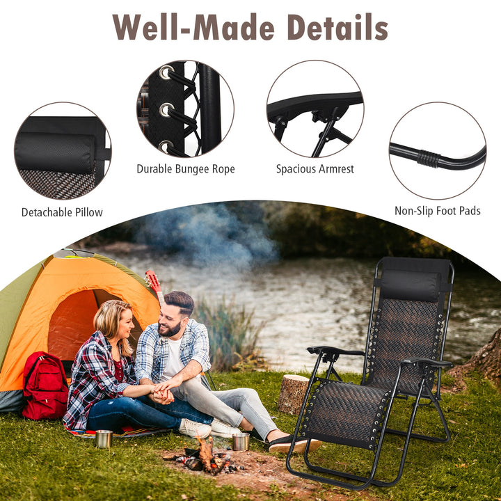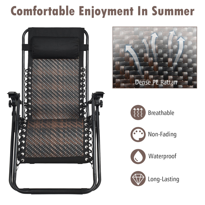 2Pcs Folding Patio Rattan Zero Gravity Lounge Chair