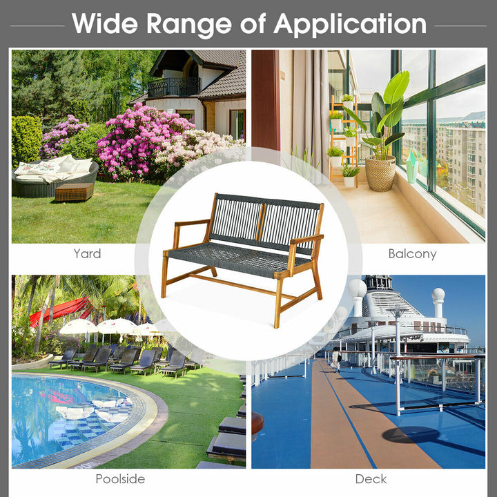 Elevate your outdoor leisure time with our Acacia Wood and Woven Rope Loveseat, a piece that combines functionality, comfort, and elegance. It's more than just a seating option; it's a stylish statement that promises to transform your outdoor area into a haven of relaxation.