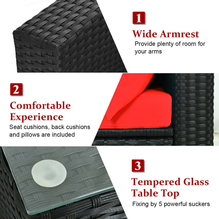 7 Pieces Sectional Wicker Furniture Sofa Set with Tempered Glass Top