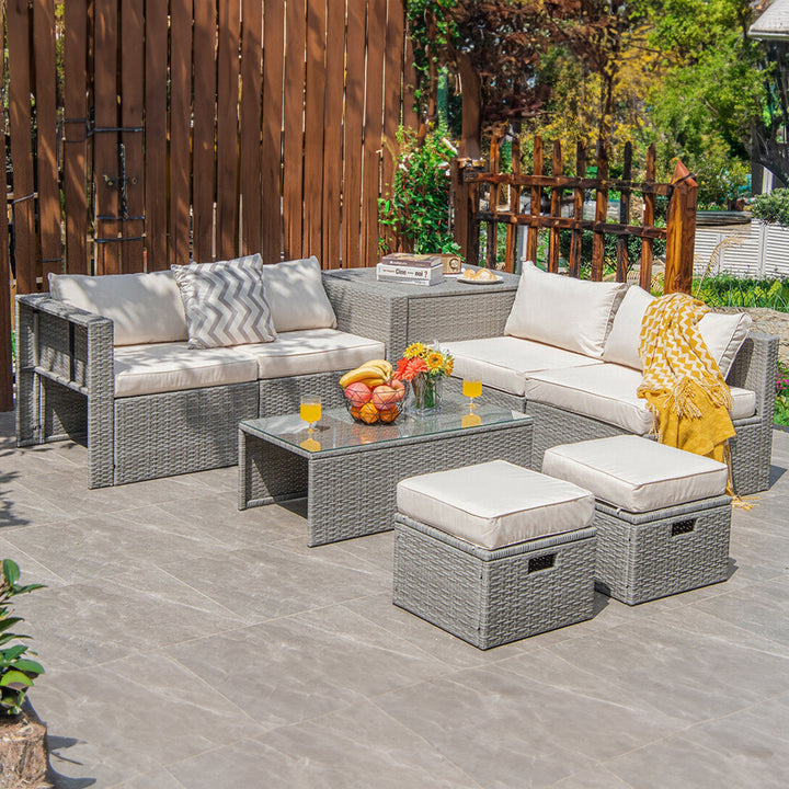 8 Pieces Wicker Patio Furniture Set with Space-Saving Design and Storage Box