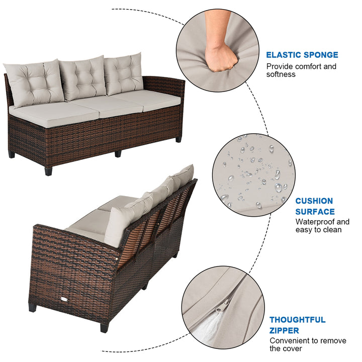 3 Pieces Hand-Woven Rattan Outdoor Sofa Set with Dining Table
