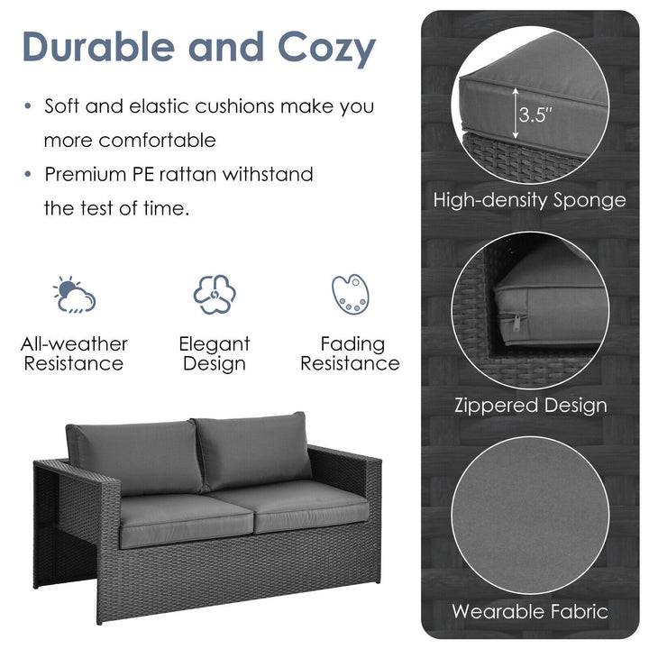 This patio furniture set is not just a place to sit; it's a versatile solution for all your outdoor relaxation needs, combining comfort, durability, and style in one elegant package. Whether you're hosting a gathering, enjoying a quiet moment, or simply soaking in the beauty of your outdoor space, this set provides the perfect backdrop for making memorable moments.