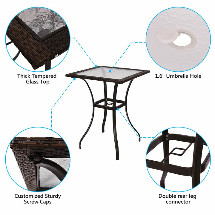 Elevate your outdoor living space with our Contemporary Style Wicker Patio Square Table, a perfect blend of elegance and functionality. Designed to enhance your patio, this table not only serves as a practical piece of furniture but also as a decorative addition that complements any outdoor setting.