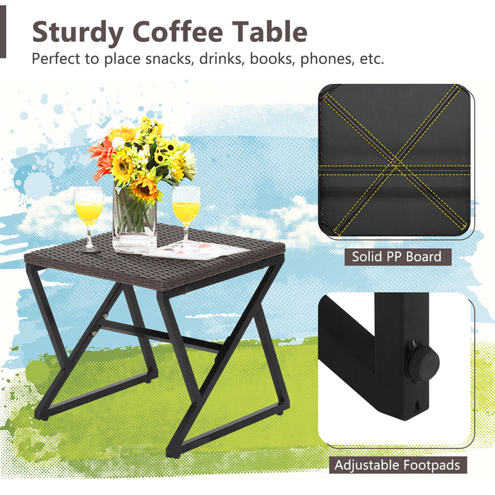 Sturdy Side Table: The set includes a durable coffee table, ideal for keeping snacks, drinks, and your favorite book within arm's reach. The table's stability is enhanced by a solid PP board under the tabletop, and adjustable footpads accommodate uneven surfaces.