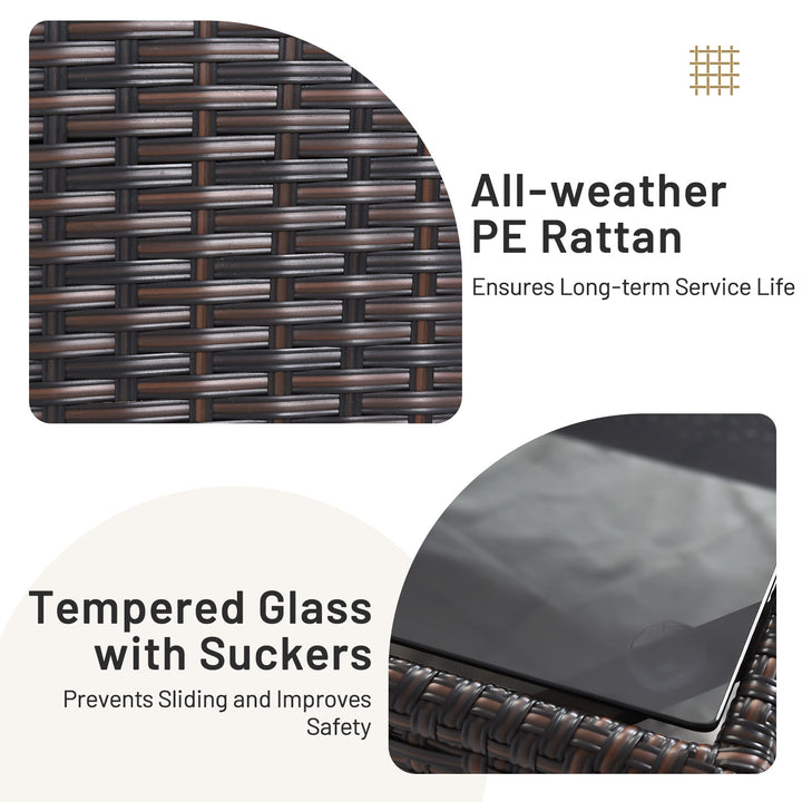 Materials: Rust-resistant steel frame, PE rattan wicker, tempered glass